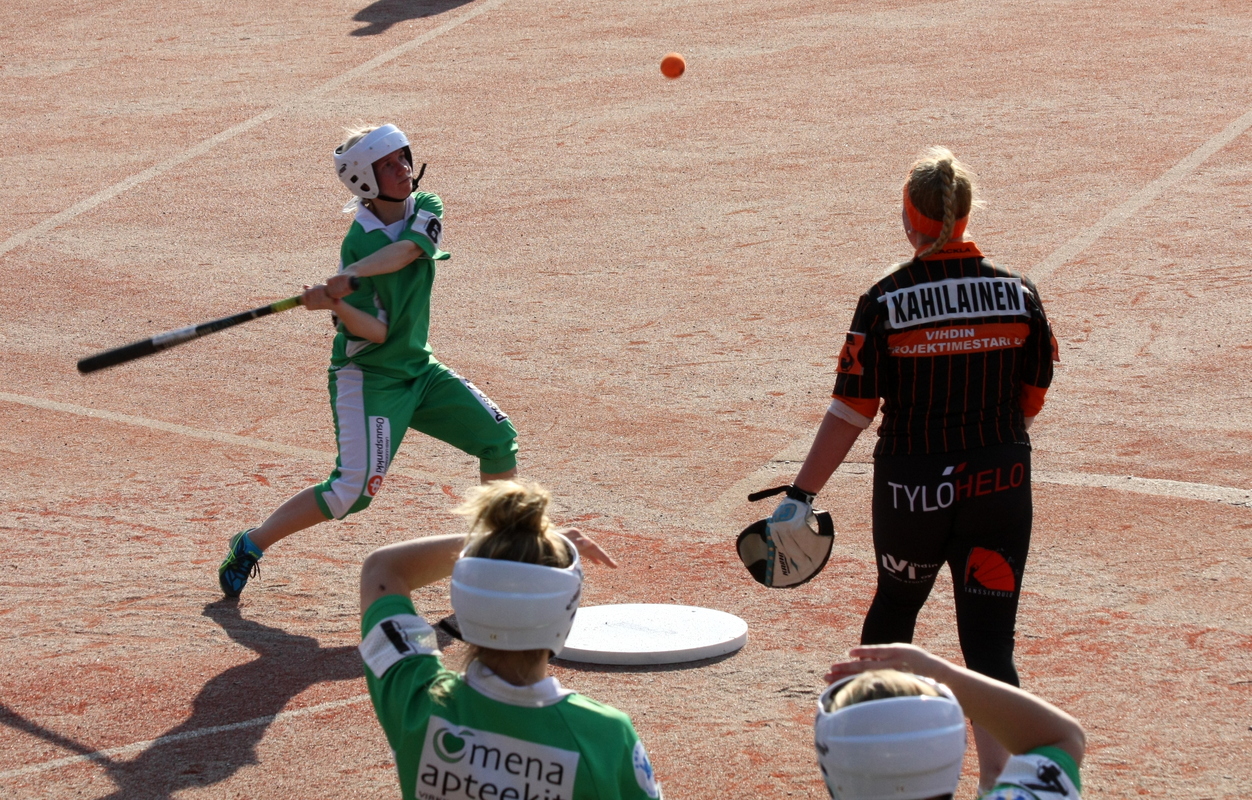 Vipan naiset aloittivat kautensa juoksuilottelulla Virkkalan Kiriä vastaan keskiviikkona 23.5. Ottelun tulos 2-0 (22-1, 13-0) ei anna selittelylle sijaa, vaan ViPa hallitsi ottelua emännän ottein. Kauden ensimmäinen ottelu alkoi Vipan kannalta hieman hermoillen ja Virkkala sai ottelun ainokaisen juoksuna aloittavalla sisävuorollaan lähinnä Vipan huolimattomuuden takia. Otteet vapautuivat kuitenkin omalla tasoittavalla, jonka jälkeen juoksuero kasvoi tasaisesti ja varsinkin ulkopeli 2-polttaja Saara Simolinin johdolla terästäytyi huippusuorituksiin. Jaksolla nähtiin myös hyviä otteita sisäpelissä ja kaksi kunnaria Emilia Helmisen ja Mari Sallisen lyöminä kruunasivat jaksovoiton. Toisella jaksolla tehtiin sisä- ja ulkopelijärjestykseen hieman muutoksia. Muutokset eivät vaikuttaneet pelin kulkuun, vaan jakso pelattiin hyvällä asenteella tarkasti kotiin. Vaikka juoksuero oli jo selvä hyvissä ajoin, jaksettiin painaa ottelu loppuun jokaisesta pallosta taistellen. Kautta ajatellen ViPan naisten joukkueessa on ihanteellinen sekoitus pesiskokemusta ja nuoruuden tuomaa iloisuutta. Joukkueesta löytyy huippunopeita etenijöitä ja paljon raaka lyöntivoimaa. Sisäpelin kannalta ei ole juurikaan väliä, mistä kohdasta vuoropari aloitetaan, sillä joukkueesta pystyy jokainen tarvittaessa etenemään ja tekemään tarvittavat suoritukset mailan varressa tilanteesta riippumatta. Ottelussa palkittiin I-palkinnolla Emilia Helminen ja II-palkinnolla Mari Sallinen. Kausi jatkuu ViPan naisten osalta sunnuntaina kello 16 Hiidenkirnussa Nurmijärven Mailaa vastaan. |