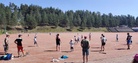 Eilen pelattiin Hiidenkirnussa kesän ensimmäinen junnusuperturnaus. G- ja F-ikäisten joukkueet Espoosta, Janakkalasta, Hyvinkäältä, Lahdesta ja Vihdistä pelasivat pienpesissäännöillä toisiaan vastaan. Edes hurja hellesää ei saanut pieniä pesäpalloilijanalkuja hyytymään vaan iloinen kilpailu osumista, onnistumisista ja pesälle ehtimisistä täytti Hiidenkirnun. Voittaminen ei ollut tärkeintä, vaikka juoksuja laskettiin ja verrattiin vastustajan lukemaan. Oman joukkueen kanssa 'kunnon' pesiksen pelaaminen tuntui olevan kaikkien tavoitteena. Onnistunut turnaus kaikin puolin vaikka lämpömittari kipusi päivän mittaan lähelle 30ºC:ta. |